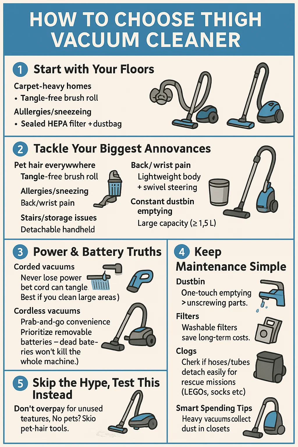 Här är en enkel guide för att välja rätt dammsugare för ditt hem, med vardagsspråk: